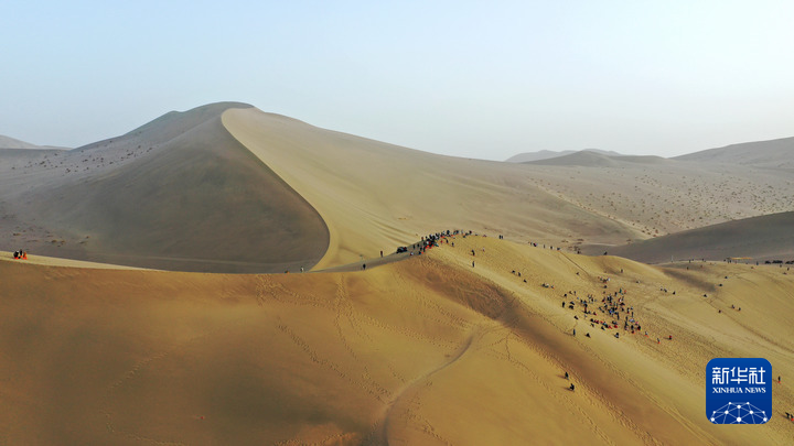 4月24日,游客在敦煌鳴沙山上游玩。新華每日電訊記者 陳斌 攝