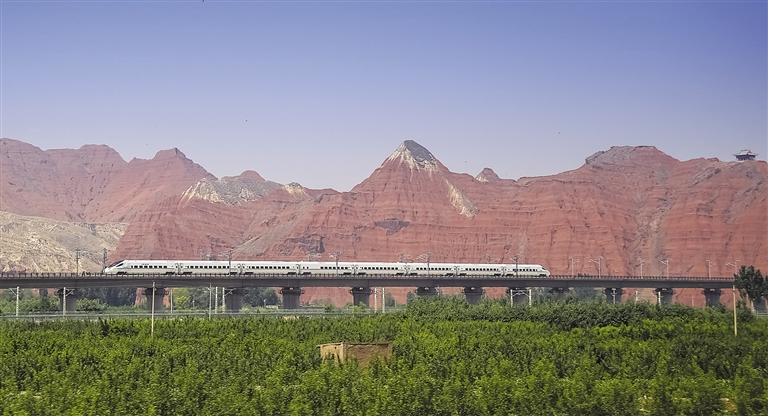 動車組列車穿越丹霞地貌