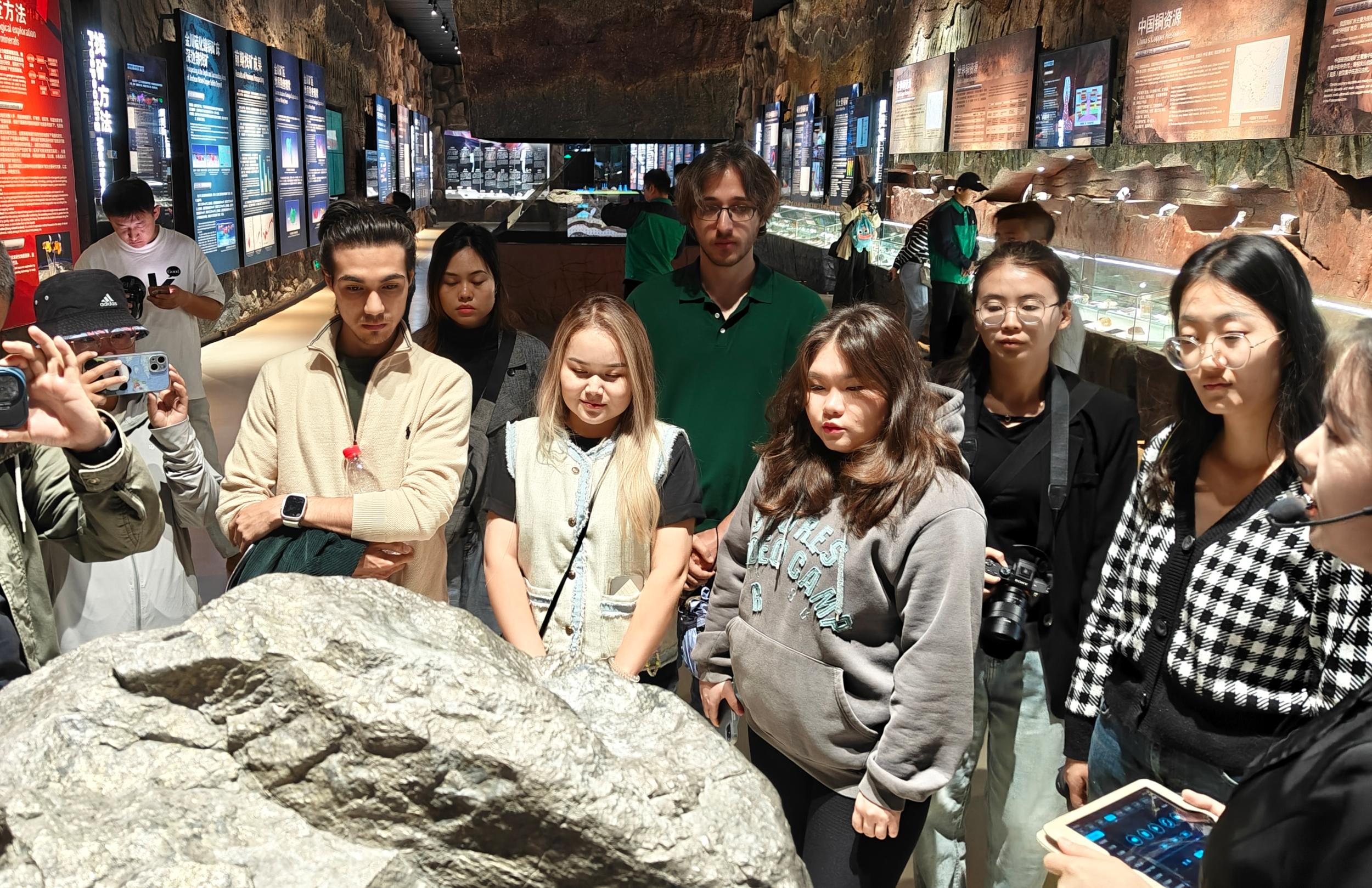 “國(guó)際體驗(yàn)官”們正在觀察礦石