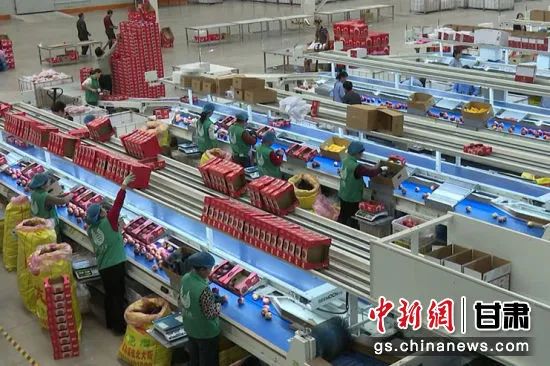 圖為寧縣慶新果業(yè)車(chē)間分揀蘋(píng)果。
