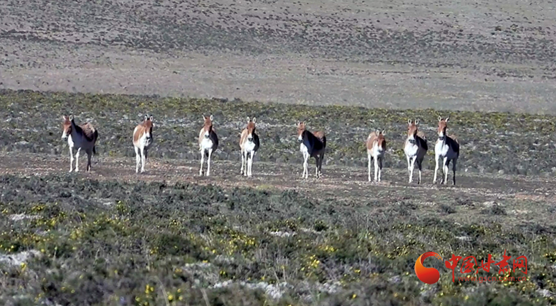畫面顯示,此次拍攝到藏野驢共10頭,它們覓食歸來,時(shí)而排成一排,悠閑地看著眼前的陌生來客,時(shí)而奔跑,馳騁在廣袤的草原之上。