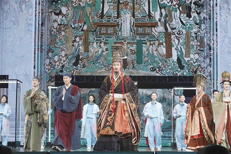2024年,適逢敦煌研究院建院80周年,中國國家話劇院堅持把思想精深、藝術精湛、制作精良奉為圭臬,傾力打造原創(chuàng)音樂話劇《受到召喚·敦煌》,以中國戲劇與現(xiàn)代科技的深度融合,煥發(fā)敦煌文明的時代光彩。