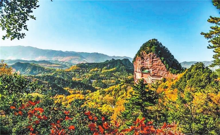 麥積山石窟 麥積山石窟地處天水市麥積區(qū)東南30公里的小隴山中,因該山形似農(nóng)家麥垛而得名。麥積山石窟與敦煌、龍門、云岡并稱為中國(guó)四大石窟。麥積山石窟保存的造像以泥塑為主,歷代連續(xù)不斷,全面展示了古代泥塑發(fā)展演變的過(guò)程,是研究雕塑史、美術(shù)史的重要資料,有“東方雕塑陳列館”的美譽(yù)。