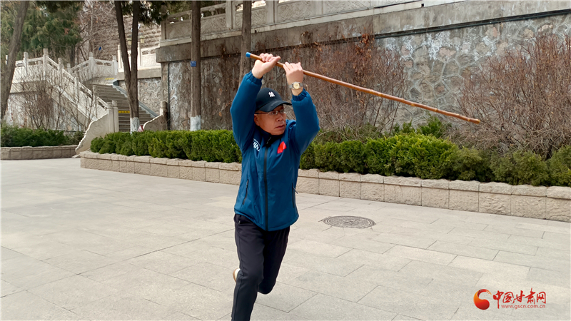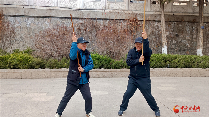 “鞭桿自古就有,甘肅天水、隴南、定西一帶也有習(xí)武者,我父親總結(jié)了蘭州纏海纏桿體系,為鞭桿百花園再添新力量。”王建國介紹蘭州纏海鞭桿體系。