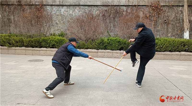 王得功老人弟子王笑強(qiáng)表示,鞭桿確實(shí)樸實(shí)無華,無論小孩,老人都能用,就像老年人,拿著鞭桿上山可以當(dāng)?shù)巧秸龋绖游锕?,但是學(xué)會纏海鞭桿則成了武器,這也是蘭州纏海鞭桿的魅力所在。