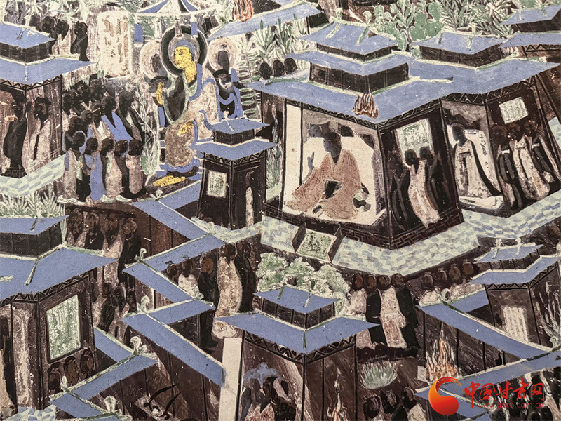敦煌石窟遺存著公元4-14世紀(jì)一千年間的歷代壁畫,總面積達(dá)4.5萬多平方米。在這些規(guī)模宏大、內(nèi)容豐富的壁畫里,建筑常作為經(jīng)變畫與故事畫的背景存在:從巍峨肅穆的寺觀塔廟,到精巧雅致的亭臺(tái)園林,從彰顯禮制的皇宮祠堂,到充滿生活氣息的民間居所,跨越千年的建筑形象在此鮮活留存,為原本史料相對(duì)薄弱的建筑史段落,提供了直觀的視覺參照。
