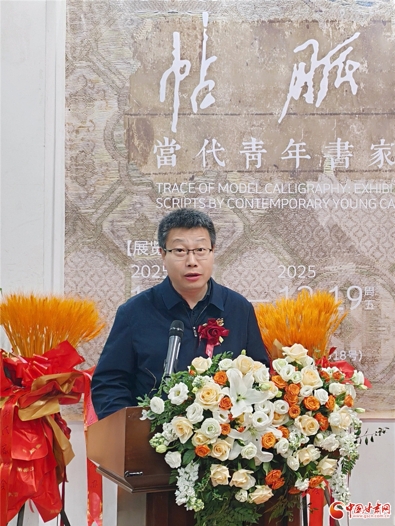 12月14日上午,“帖脈溯望——當代青年書家行草作品展”在甘肅美術館開幕。中國書法家協(xié)會理事、甘肅省文聯(lián)黨組成員、副主席陳新長在開幕式致辭中表示,河北美術學院七位青年教師的作品展,以九零后的視角重新解讀二王法脈、唐草風神與晚明意趣,作品既有晉唐筆法的精微細膩,又有當代審美的開闊格局。