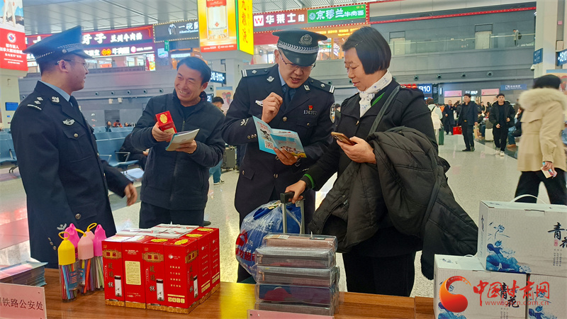 上午9時,蘭州西站候車大廳內(nèi)暖意融融、人流有序。一場簡短而溫馨的文藝表演拉開了活動序幕,為匆匆旅途增添了濃厚的節(jié)日氛圍與人文關(guān)懷。隨后,聚焦春運核心主題,蘭州西站派出所開展“平安相伴·鐵警相隨”主題安全宣傳活動。民警在法治宣傳展臺前,耐心細致地向旅客講解最新鐵路安全管理規(guī)定、禁限帶物品目錄以及電子客票使用須知等內(nèi)容,并發(fā)放宣傳資料,現(xiàn)場解答疑問,助力旅客平安出行。