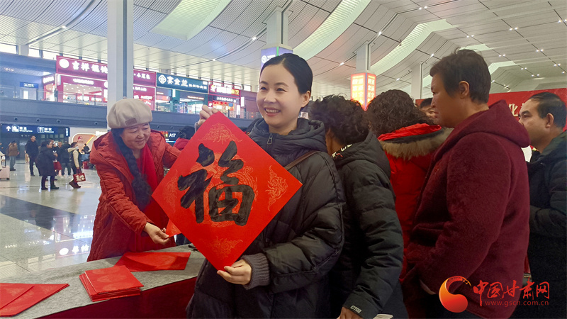 春運(yùn)首日,國鐵蘭州局在蘭州西站、銀川站、嘉峪關(guān)南站等車站開展“文明出行 文化相伴”特色活動(dòng),通過贈(zèng)送春聯(lián)福字、文明出行倡議簽名及簡(jiǎn)約文藝展演,為候車旅客營造濃厚年節(jié)氛圍。