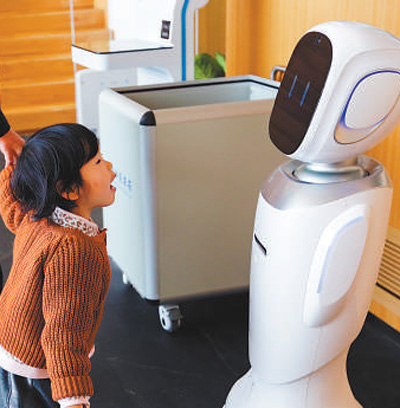 小讀者與館內(nèi)的機器人交流。闕明芬 攝(人民視覺)