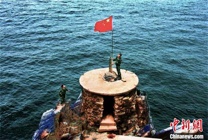 王繼才生前在孤島上升起五星紅旗的資料照片 主辦方供圖