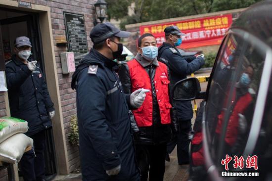 資料圖:社區(qū)工作人員和物業(yè)保安對進出車輛進行核實和對駕乘人員測量體溫。泱波 攝