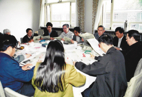 黃鴻森先生(后排左二)上世紀(jì)90年代初作為專家評(píng)委,參加由本報(bào)舉辦的全國(guó)報(bào)紙編校質(zhì)量抽查評(píng)比活動(dòng)。