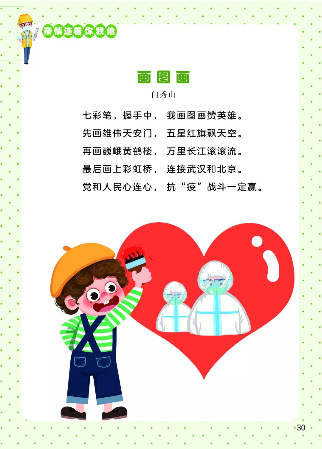 新冠肺炎疫情爆發(fā)以來,全國人民積極投入到疫情防控阻擊戰(zhàn)中,孩子們、兒童文學(xué)作家也紛紛發(fā)聲,創(chuàng)作了大量優(yōu)秀的童謠。每一首童謠是一聲鼓勁的吶喊,匯集起來就是嘹亮的戰(zhàn)歌;每一首童謠點(diǎn)亮一束希望的光,光束匯聚就是光明的未來。