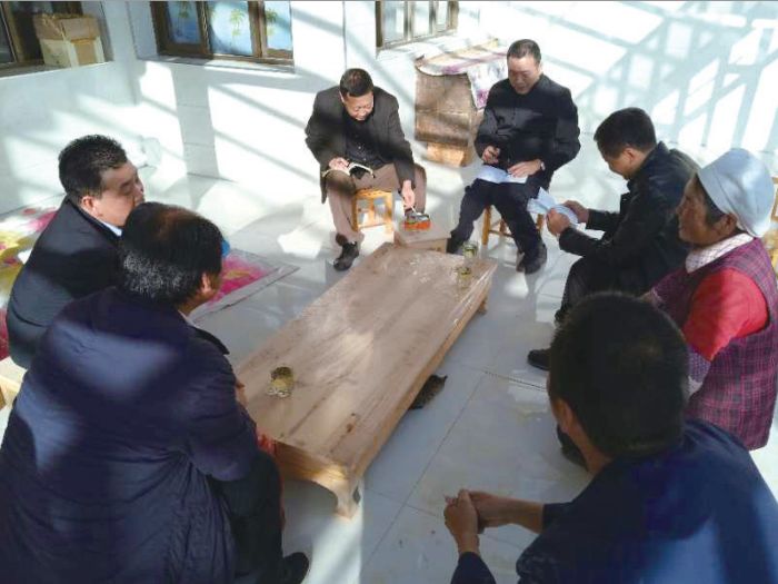 高凱、王志祥等在羊永鎮(zhèn)白土村二社王石山保家調(diào)研安全飲水事宜?!⊥鯐灾?nbsp;攝