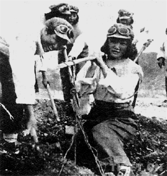 圖為《天路行軍1950——千名女兵徒步進(jìn)藏紀(jì)實(shí)》中插圖:搶修機(jī)場(chǎng)的女兵