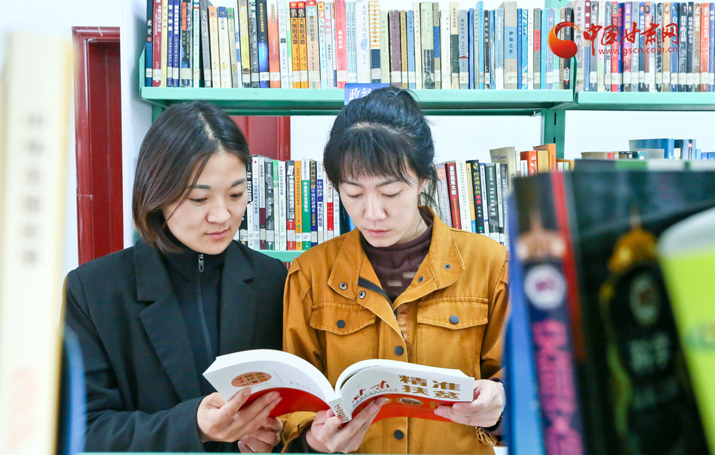 4月21日,甘肅張掖甘州區(qū)三閘鎮(zhèn)農(nóng)家書(shū)屋內(nèi)鄉(xiāng)村干部閱讀自己喜愛(ài)的書(shū)籍。