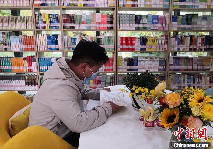 “有很多適合小朋友閱讀圖書,我們家附近沒(méi)有圖書館,平時(shí)大多都帶孩子去書店,現(xiàn)在有書房挺好的,也可以帶孩子來(lái),累了在這兒看書休息。”蘭州市民李敏認(rèn)真細(xì)數(shù)書架上的圖書。