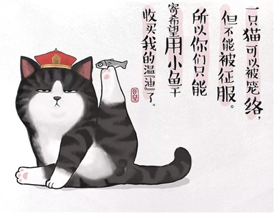 百萬級漫畫作品《就喜歡你看不慣我又干不掉我的樣子》(簡稱“喜干”)的作者白茶,甚至被稱為“社交媒體時代的豐子愷”。主人公吾皇、巴扎黑、少年、牛能是最先走進讀者心里的“喜干元素”,在這些“貓貓狗狗”身上,國畫元素與現(xiàn)代漫畫表達完美融合,所有場景都有種基于國風(fēng)的“都市范兒”,好像一個小爪子就能撓進你心,頗有“以古鑒今”的調(diào)調(diào)。書名本身就顯示了一種當(dāng)代人對待世界的態(tài)度,用微小而“獨一無二”的自我和世界互動。經(jīng)典語錄如“無法改變的,學(xué)會去享受”“遇事冷靜,臉小三分”“既然彼此彼此,何不放過彼此”,疫情期間,狗狗巴扎黑更是定下了“自己遛自己”的計劃,暖心的畫面令讀者愛不釋手。
