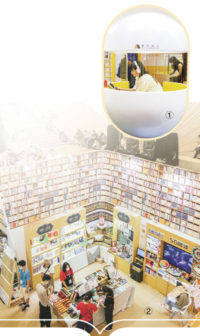 圖①:讀者在上海書展現(xiàn)場(chǎng)體驗(yàn)“未來自習(xí)室”。