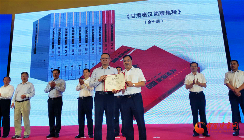 首發(fā)式上,朱建軍作了致辭,仇健、張德芳、柳鵬和周偉為《武威漢簡集釋》揭幕,甘肅簡牘博物館向武威市圖書館贈(zèng)送了“甘肅秦漢簡牘集釋”叢書。