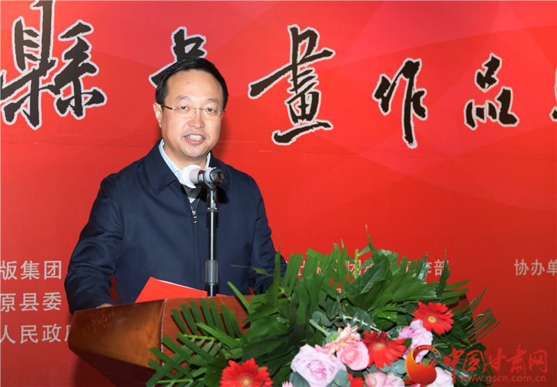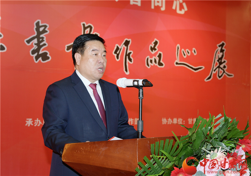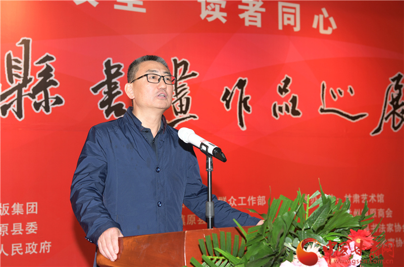 王登渤在致辭中說,素有“書法之鄉(xiāng)”的鎮(zhèn)原,歷史文化悠久。書法、繪畫興始漢代,盛至清末,而喜好書畫之風(fēng)則歷史更久。在歷代書畫家的精心耕耘下,鎮(zhèn)原凝聚起一股濃郁的習(xí)書作畫的藝術(shù)氣息。經(jīng)過百余年的傳承與發(fā)展,如今的鎮(zhèn)原書畫之風(fēng)盛行,無論城鎮(zhèn)鄉(xiāng)村、大家小戶,貼字掛畫蔚然成風(fēng),涌現(xiàn)出的一大批書畫名流,猶若星辰,遍布于全國各地。作為一個縣,此次能在蘭州舉辦書畫巡展,藝術(shù)水準(zhǔn)很高,充分展示出鎮(zhèn)原縣“中國書法之鄉(xiāng)”的深厚文化內(nèi)涵和鎮(zhèn)原縣書畫家們的才情智慧和藝術(shù)品格,也全面展示了鎮(zhèn)原發(fā)展變化的嶄新面貌。希望鎮(zhèn)原縣繼續(xù)加大扶持發(fā)展書畫事業(yè),持續(xù)提升鎮(zhèn)原書畫藝術(shù)發(fā)展水平,也希望涌現(xiàn)出更多的書畫藝術(shù)家,為繁榮當(dāng)?shù)匚乃囀聵I(yè)、助力脫貧攻堅、美麗鄉(xiāng)村建設(shè)作出應(yīng)盡的貢獻(xiàn)。