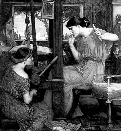 英國(guó)畫(huà)家約翰·威廉姆·沃特豪斯的作品《珀涅羅珀和她的追求者們》(局部)。資料圖片
