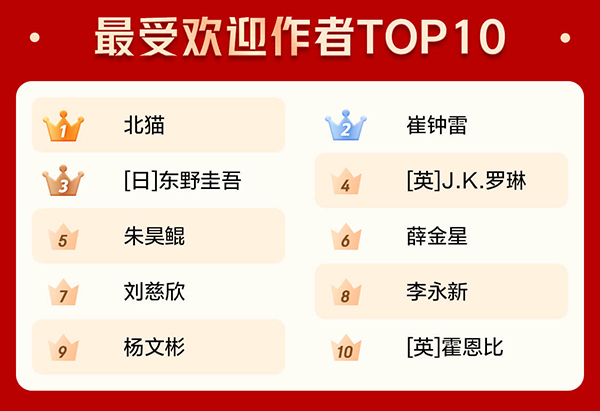 這些搜索熱詞同樣帶動(dòng)了相關(guān)圖書的銷售。兒童書作家北貓和崔鐘雷成為京東圖書2020年最受歡迎作者的第一名和第二名。在“哈利·波特”和“三體”成為熱搜詞的同時(shí),作家J.K.羅琳和劉慈欣也入圍京東圖書2020年最受歡迎作者TOP10。