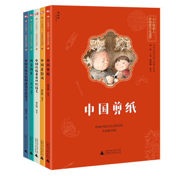 奶奶炕頭的窗花,皮影勾勒的世界,吳儂軟語縈繞的絲綢,故宮雄偉的大殿,穿越千年的鼓韻……“小小傳承人:非物質文化遺產(chǎn)”系列傳統(tǒng)文化讀本日前推出第一輯,包括《中國剪紙》《中國皮影戲》《中國傳統(tǒng)桑蠶絲織技藝》《西安鼓樂》《中國傳統(tǒng)木結構建筑營造技藝》五本。