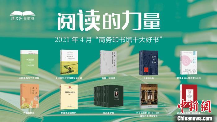 中新網北京5月9日電 (記者 應妮)商務印書館2021年第4期“月度新書發(fā)布會”8日晚在線上舉行。4月的“商務印書館十大好書”隨之出爐:《中國道路與三農問題》《鄉(xiāng)村振興與可持續(xù)發(fā)展之路》《錢穎一對話錄》《大學的生命》《日常生活心理健康50問》《古典植物園》《中國考試制度史》《伏爾泰文集》(全十卷)和《二十年危機1919-1939:國際關系研究導論》、《語言變化原理:社會因素》十種好書入選。
