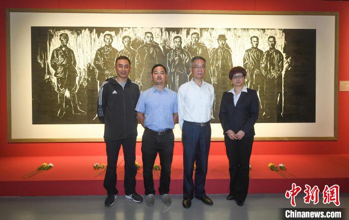 6月5日,在浙江杭州舉行的《瞬間:重返浙江紅色現(xiàn)場(chǎng)》新書(shū)發(fā)布現(xiàn)場(chǎng),寧波市奉化區(qū)委黨校教師裘是等四人在一幅畫(huà)作前拍了一張合影。