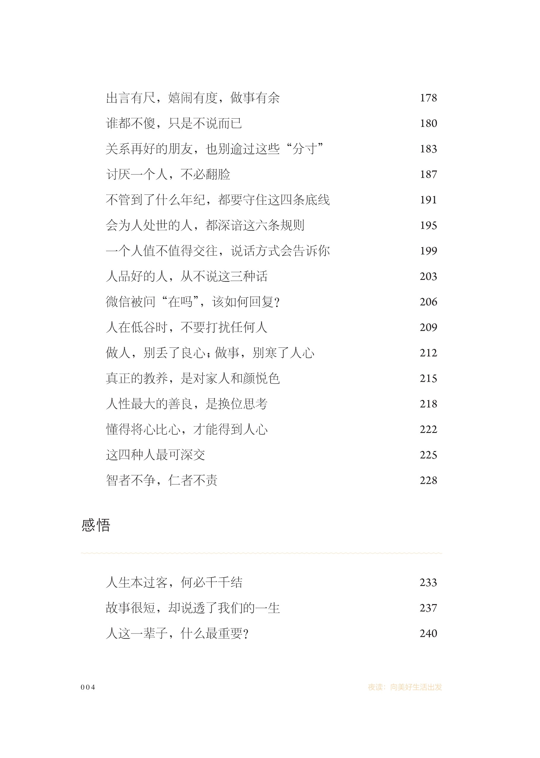 本書(shū)精選了新華社“夜讀”欄目五年來(lái)的近百篇文章,涵括親情、友情、成長(zhǎng)、修養(yǎng)等多個(gè)話(huà)題,通過(guò)小視角身邊事給讀者帶來(lái)人生的感悟與啟迪,幫助讀者培養(yǎng)正確的價(jià)值取向和良好的品德修養(yǎng)。文章均配有專(zhuān)業(yè)主播朗讀,以?xún)?yōu)質(zhì)聲音演繹精品內(nèi)容,讓讀者體驗(yàn)更多與書(shū)相伴的方式,是送給新時(shí)代青年的一本有溫度的書(shū)籍。