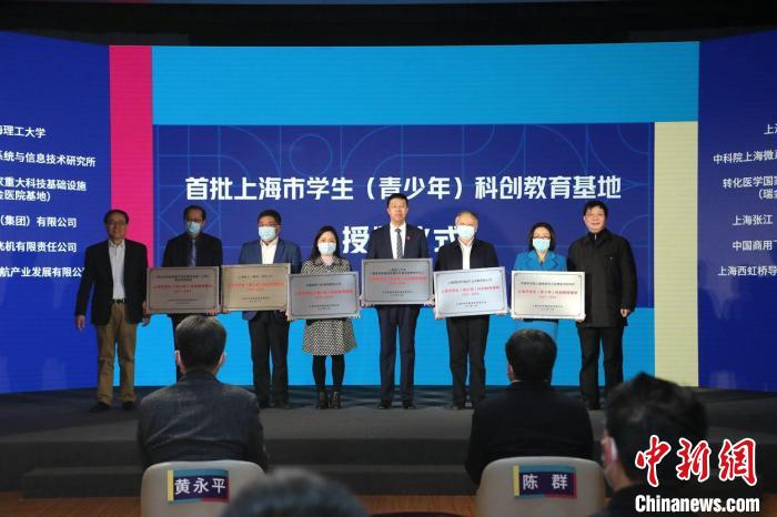 首批上海市學(xué)生(青少年)科創(chuàng)教育基地代表獲授牌?!∩虾J锌萍妓囆g(shù)教育中心供圖