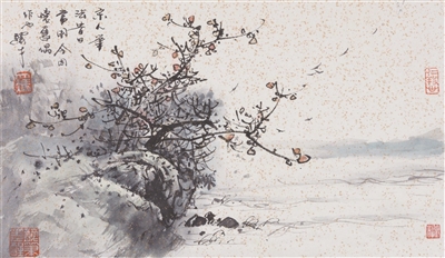 馮先生還和夫人在每年結(jié)婚紀(jì)念日時(shí)一起作畫,“我們?nèi)ツ赀^了綠寶石婚,結(jié)婚55周年。每到結(jié)婚紀(jì)念日,都是我們倆人畫一幅,畫一對小鳥。早在六七十年代最艱苦的時(shí)候就開始了,因?yàn)槲曳蛉艘彩钱嫯嫷模覀兡菚r(shí)一起畫了一對小鳥在風(fēng)雪里,那幅畫我現(xiàn)在還有。后來我們一直畫鳥,風(fēng)景在不斷地變化,這和我們對生活的感受有很大的關(guān)系。”