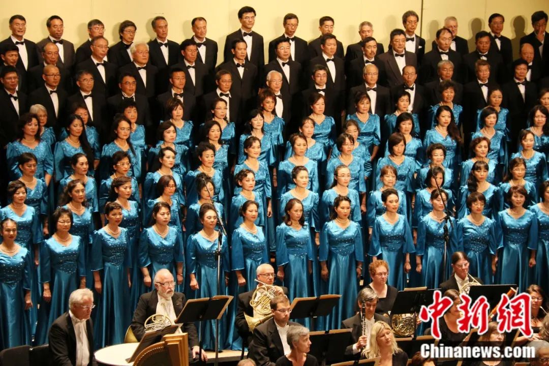 2015年8月,美國舊金山灣區(qū)華人合唱團在硅谷弗林特表演藝術(shù)中心演唱《黃河大合唱》。中新社記者 劉丹 攝