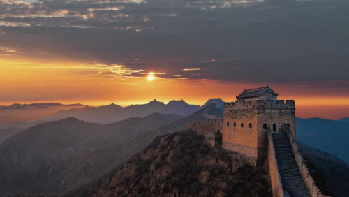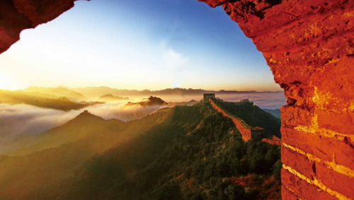跨峻嶺,穿荒原,橫瀚海,經(jīng)絕壁,縱橫十萬里。望不斷長龍烽垛,雄關(guān)隘口,猶如玉帶明珠,點(diǎn)綴成江山錦繡。起伏奔騰,飛舞盤旋,長城就是中國人給這個(gè)世界增添的偉大奇跡。