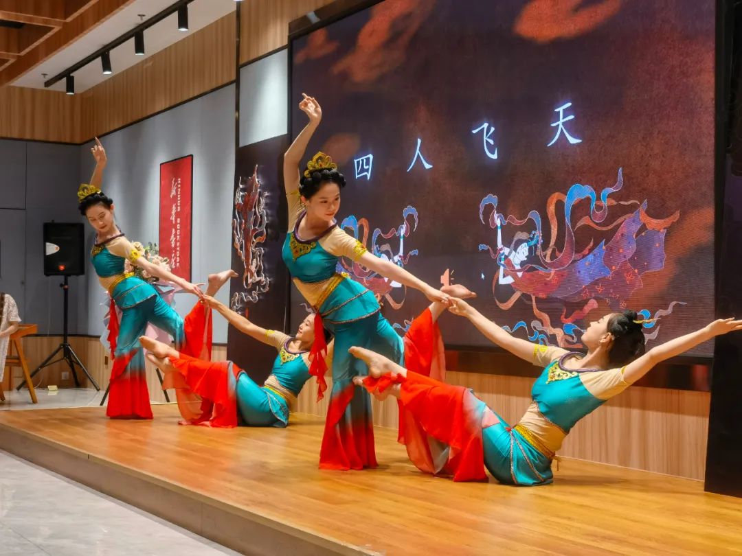 見面會(huì)現(xiàn)場(chǎng),作者介紹了本書創(chuàng)作歷程,并通過“形、神、氣、韻”“抻、曲”“舞姿控制”“四臂觀音”“四人飛天”“胡旋與琵琶”等組合精彩紛呈的表演,使讀者更加直觀地了解本書的主要內(nèi)容和敦煌舞蹈的文化內(nèi)涵,感受敦煌舞蹈?jìng)鬟f出的藝術(shù)價(jià)值、文化素養(yǎng)和無窮的魅力。