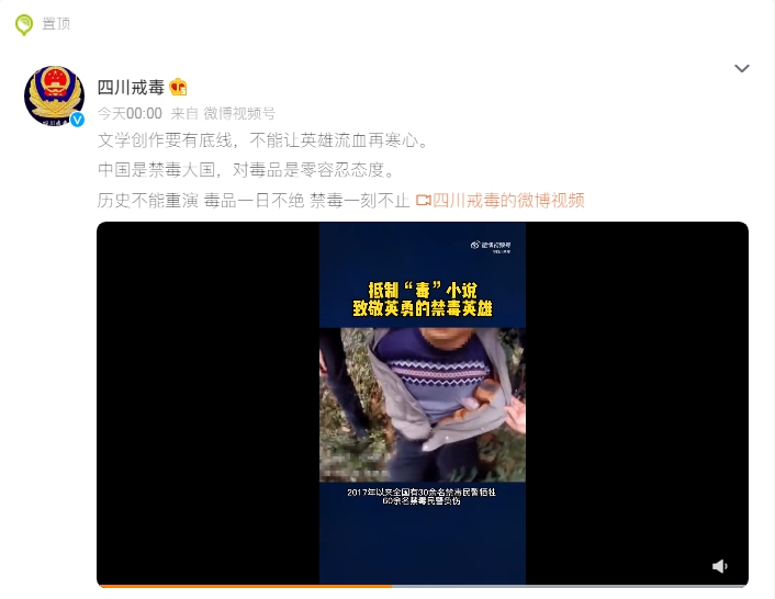 四川省戒毒管理局在此次發(fā)聲中表示,中國(guó)是禁毒大國(guó),是世界上列管毒品最多、管制最嚴(yán)的國(guó)家,對(duì)毒品是零容忍態(tài)度。面對(duì)暴戾的毒販,緝毒警察每一次抓捕都以命相搏。聲明強(qiáng)調(diào),抵制“毒”小說,致敬英勇的禁毒英雄。