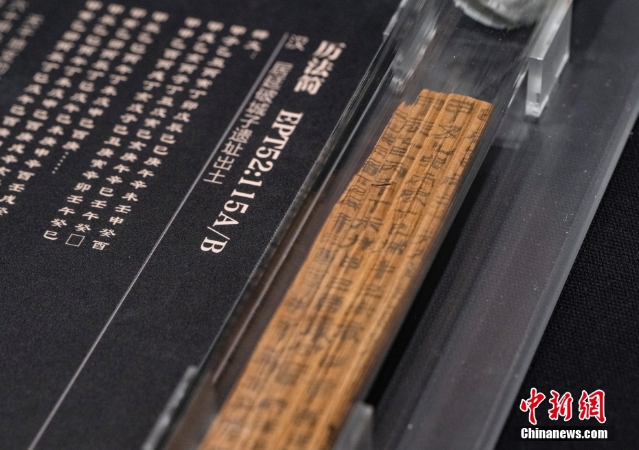 1月17日,“二十世紀(jì)初中國古文獻(xiàn)四大發(fā)現(xiàn)展”正在位于北京的國家典籍博物館內(nèi)展出。本次展覽分為“殷墟甲骨”“居延漢簡”“敦煌遺書”“明清檔案”四個(gè)專題,首次將分藏于各處的四大文獻(xiàn)薈萃一堂,集中多種類型的珍貴文物文獻(xiàn)共249種,382件,是目前為止“四大發(fā)現(xiàn)”文物最大規(guī)模的展覽。圖為“居延漢簡”展區(qū)中展示的一條“歷法簡”的真跡實(shí)物展品。 中新社記者 侯宇 攝