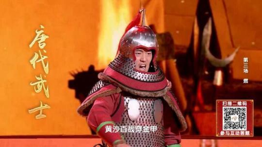 “王于興師,修我甲兵,與子偕行”是統一六國的秦代武士;“戎馬鳴兮金鼓震,壯士激兮忘身命”是平定邊患的漢代武士;“黃沙百戰(zhàn)穿金甲,不破樓蘭終不還”是萬里長征的唐代武士;“壯志饑餐胡虜肉,笑談渴飲匈奴血”是直搗黃龍的宋代武士。這幾位武士代表堪稱《中國詩詞大會》“史上最強出題天團”,為選手們帶來超燃的題目。