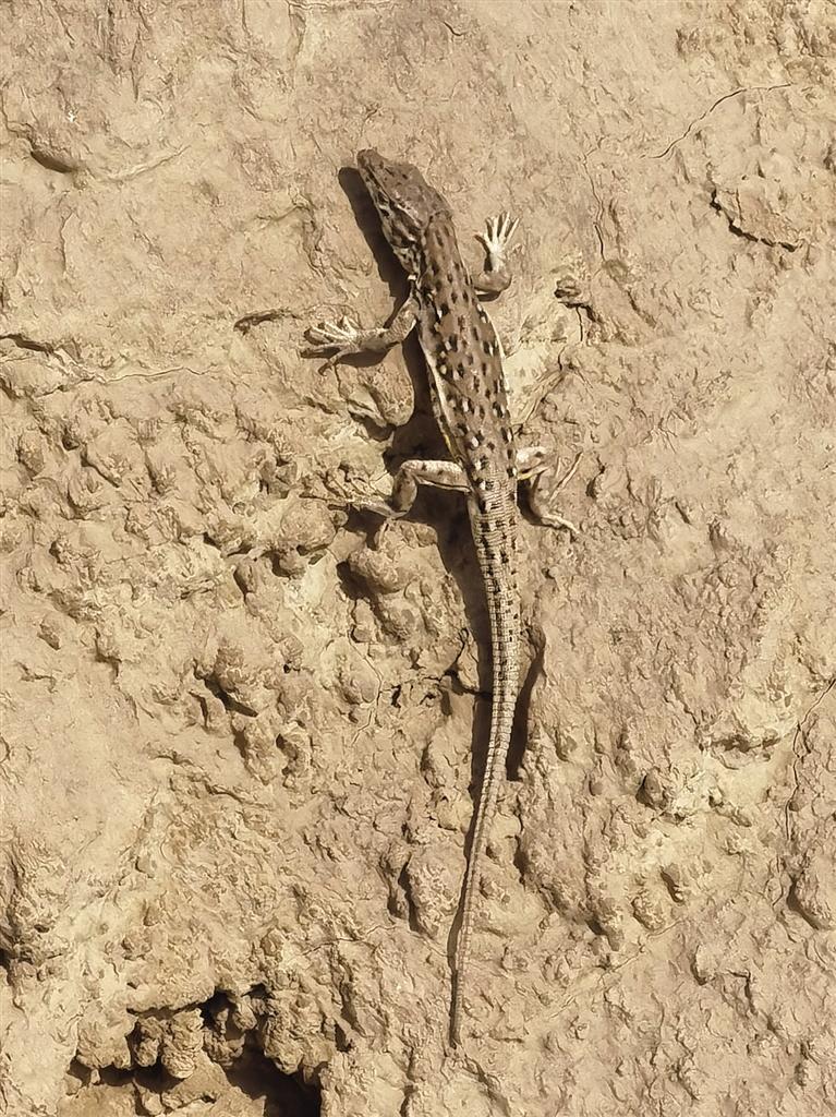 即將到達山頂,腳底下發(fā)現(xiàn)了亂竄的小蜥蜴。這是當?shù)爻R姷囊环N小蜥蜴,就是壁虎,當?shù)厝朔Q為蝎虎子、七寸子。土皮色,半厘米粗,5至10厘米長,跑的很快,有很強的自我保護意識。若被人或獵食者抓住尾巴,會主動斷掉尾巴逃跑,后在不到一個月的時間內(nèi),長出新尾巴。盡管有此本領(lǐng),但往往還是鷹和烏鴉等食肉飛禽及蛇的獵物。