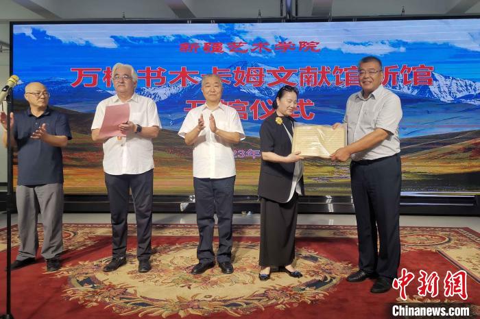 中新網(wǎng)烏魯木齊7月20日電 (胡嘉琛)“木卡姆記譜手稿不應(yīng)塵封在書柜,應(yīng)當(dāng)讓更多人了解它、傳承它。把它交到專心做研究的學(xué)者手中,我很放心。”萬桐書之女萬靜20日在新疆烏魯木齊說。當(dāng)日,萬桐書木卡姆文獻(xiàn)館新館在新疆藝術(shù)學(xué)院開館,萬靜將萬桐書1952年至1957年間收集整理的木卡姆記譜手稿贈(zèng)給校方。
