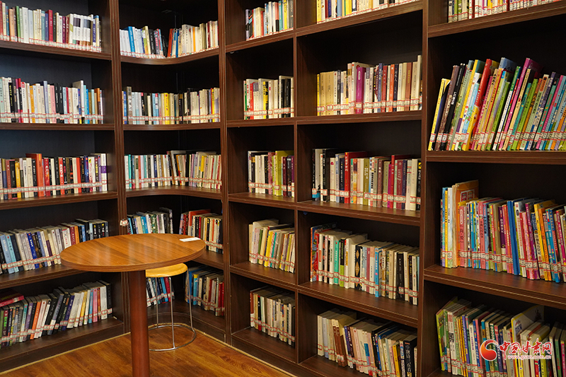 穿過大門,張亞茹帶著我們來到了書屋的書架。書架上陳設(shè)著各種各樣的書籍,讓人不禁沉浸在圖書的墨香中。