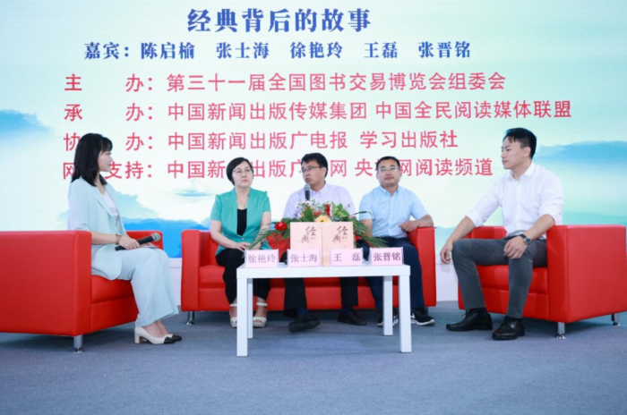 全民閱讀“紅沙發(fā)”系列訪談活動(dòng)上,學(xué)習(xí)出版社介紹《經(jīng)典背后》的出版故事。組委會(huì)供圖