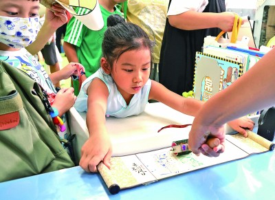 8月20日,國(guó)家圖書(shū)館少年兒童館舉辦“朱夏國(guó)風(fēng)日”傳統(tǒng)文化沉浸式體驗(yàn)活動(dòng),為小讀者創(chuàng)造別樣的閱讀體驗(yàn)。同時(shí),國(guó)家圖書(shū)館舉辦的多個(gè)展覽也成為孩子們避暑長(zhǎng)知識(shí)的好去處。