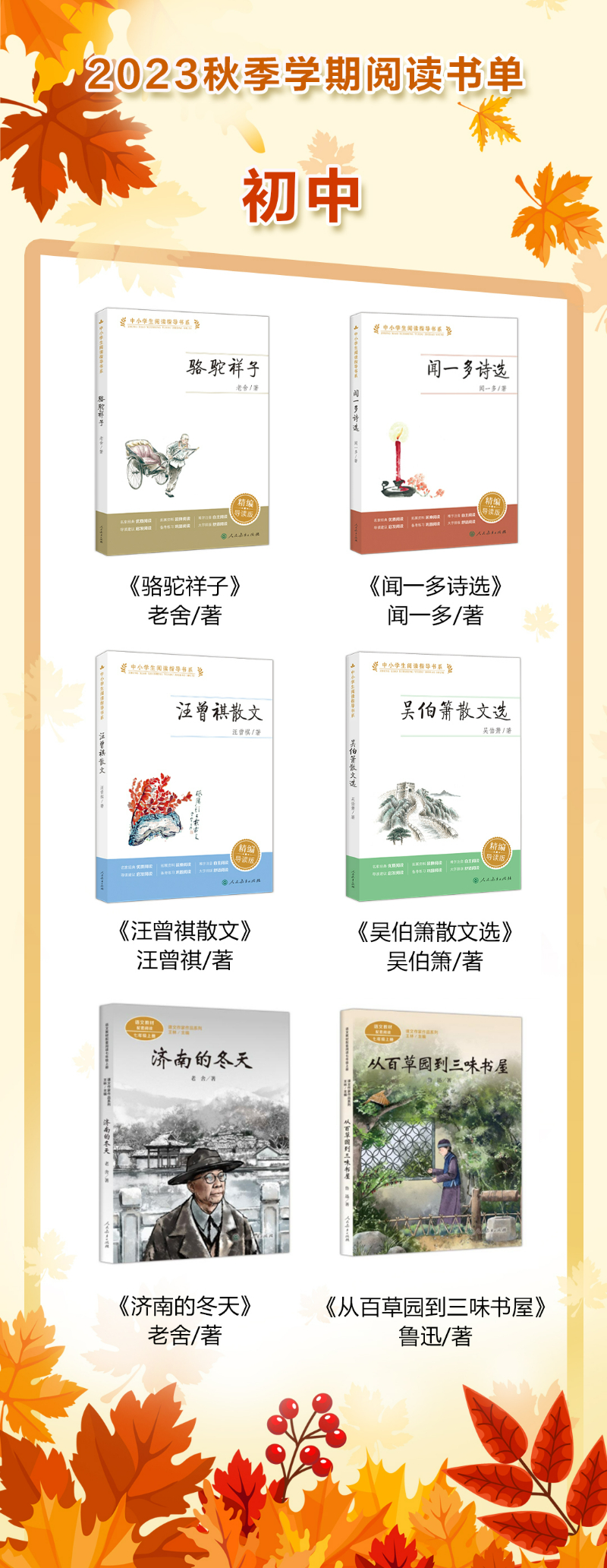 2023秋季學(xué)期初中閱讀書單