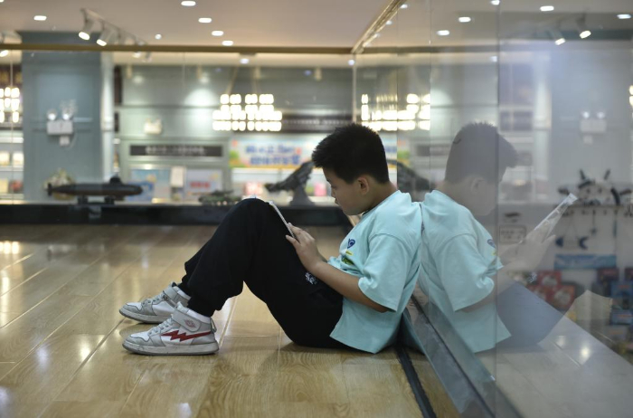 10月18日,一名小學(xué)生在鄭州市緯五路第一小學(xué)校園閱讀中心內(nèi)閱讀。