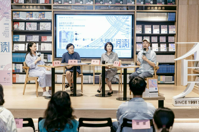 分享會(huì)上,閱讀公益組織“愛閱公益基金會(huì)”的李文、兒童有聲書品牌“老墨家族”的“墨叔叔”、學(xué)習(xí)困難關(guān)愛協(xié)會(huì)“學(xué)愛會(huì)”許倩、讀困家長社群“飛米力”(本書翻譯團(tuán)隊(duì))主理人鄭楓,四位嘉賓,帶著各自不同的成長和行業(yè)經(jīng)歷背景,圍繞“不一樣的孩子,不一樣的閱讀”的主題展開交流,從不同的角度表達(dá)了他們對(duì)于閱讀障礙的關(guān)切。