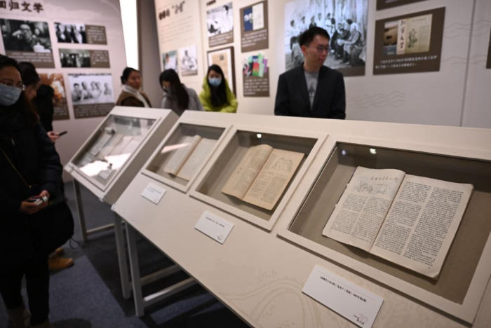 “近300張照片和550余件展品,全景記錄王蒙70年來與共和國發(fā)展歷史相伴、與祖國和人民同呼吸共命運的文學(xué)創(chuàng)作歷程。”本次展覽策展人江琳介紹,展覽展示了王蒙先生跌宕起伏的人生經(jīng)歷和各時期的代表性優(yōu)秀文學(xué)作品,表現(xiàn)他為黨、為國家、為人民寫作的初心和使命。