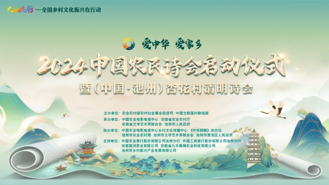 大地流彩,詩賦“三農”。3月31日,“大地流彩—全國鄉(xiāng)村文化振興在行動”重點活動“愛中華愛家鄉(xiāng)”2024中國農民詩會啟動儀式暨(中國·池州)杏花村清明詩會在安徽池州杏花村文化旅游區(qū)舉辦,主題為“春和景明詩出池州”。本次活動由農業(yè)農村部農村社會事業(yè)促進司、中國文聯(lián)國內聯(lián)絡部主辦,中國農業(yè)電影電視中心、安徽省農業(yè)農村廳、安徽省文學藝術界聯(lián)合會、池州市人民政府承辦。